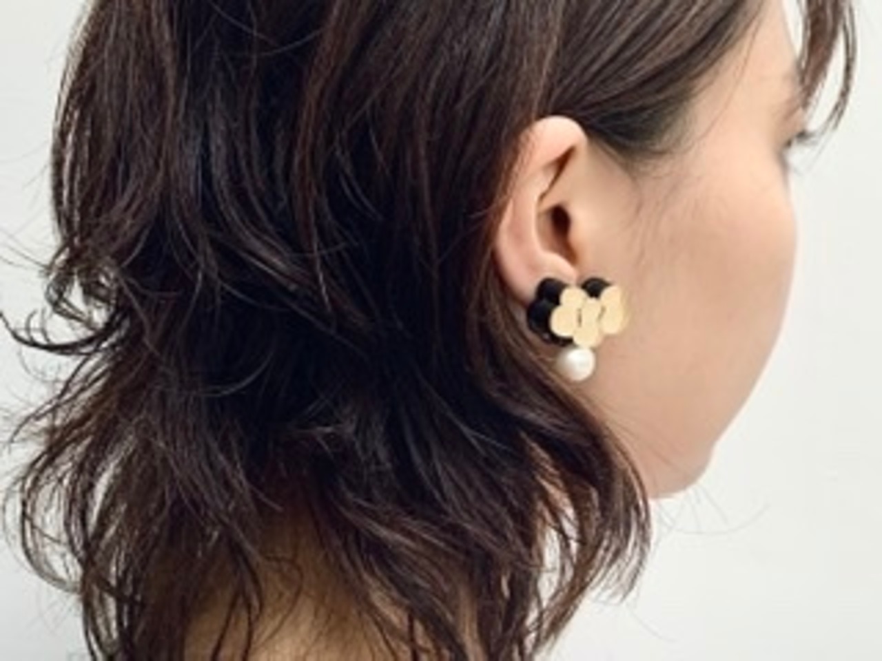 E・イヤリング(clip earrings)はニッケルフリー(NF)の金具で出来ております。