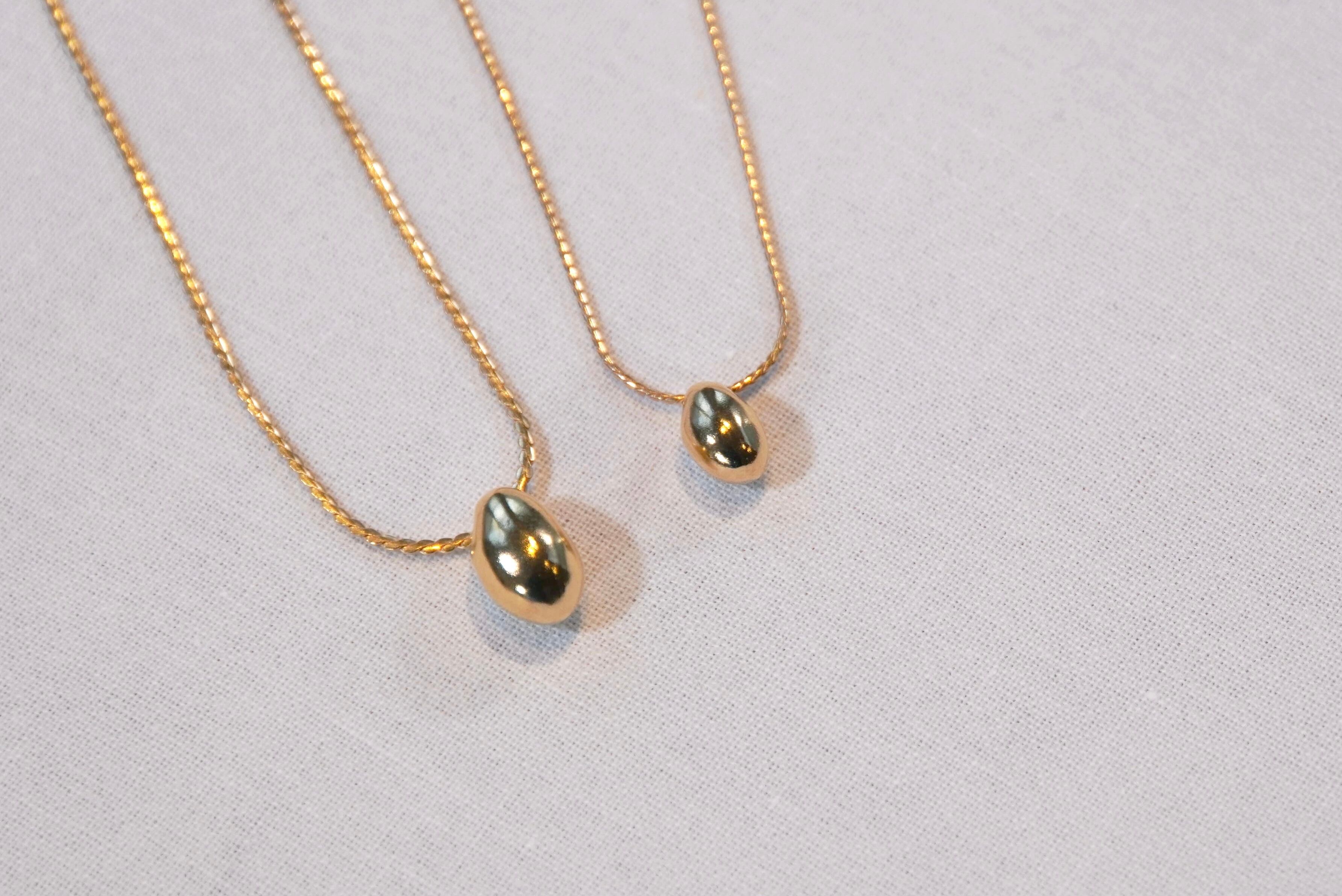 お米のかたちをモチーフとしたシリーズのネックレス。